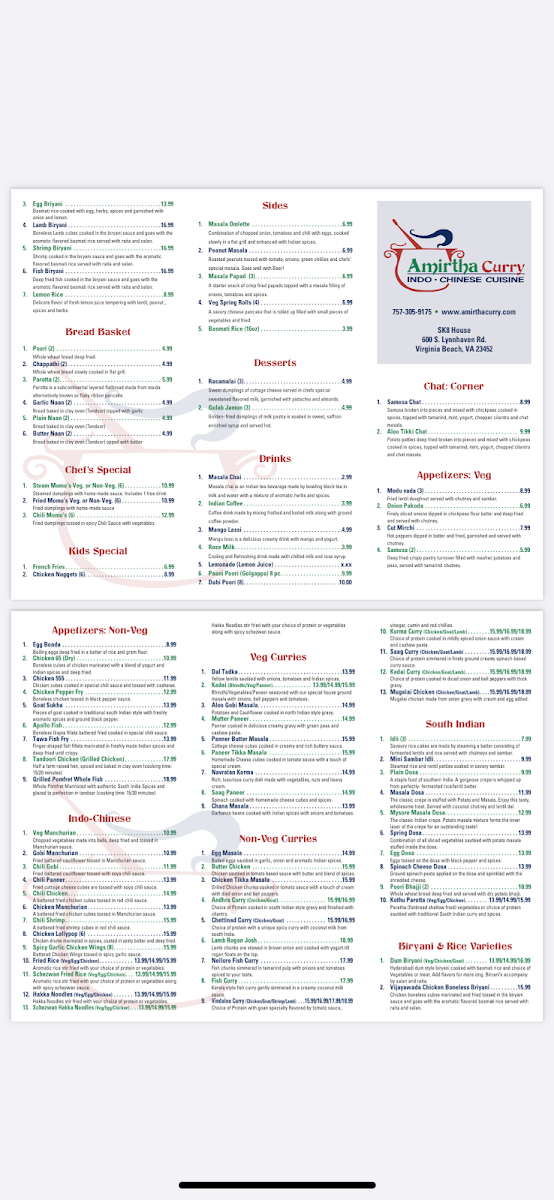 Amirtha Curry - Sk8 House - Virginia Beach Menu brings a lively mix of comforting classics and bold South Asian flavors right to 600 S Lynnhaven Rd in Virginia Beach. As you look through the dishes, you’ll notice how the menu leans into rich spices and homestyle touches, yet still keeps things relaxed and approachable. There’s an easy charm to the way each item feels both familiar and a little adventurous.